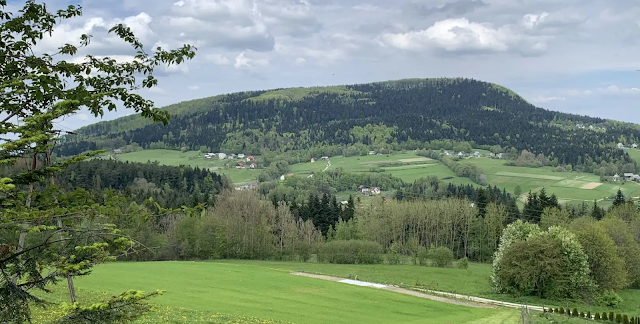 Można też ominąć strome podejście i zejścia z wierzchołka tej góry i nie dokładać tych 2 kilometrów poprowadzonych w dużej części asfaltową drogą i przejść wygodną, chociaż nieoznakowaną leśną drogą poprowadzoną w dolnej części południowego stoku tej góry. Zamiast wędrówki po asfalcie, między polami i budującymi się nowymi domami, droga ta o szutrowej nawierzchni prowadzi przez piękny las z bogatym kwiecistym poszyciem, obok leśnego jeziorka, przy którym można zatrzymać się na odpoczynek.